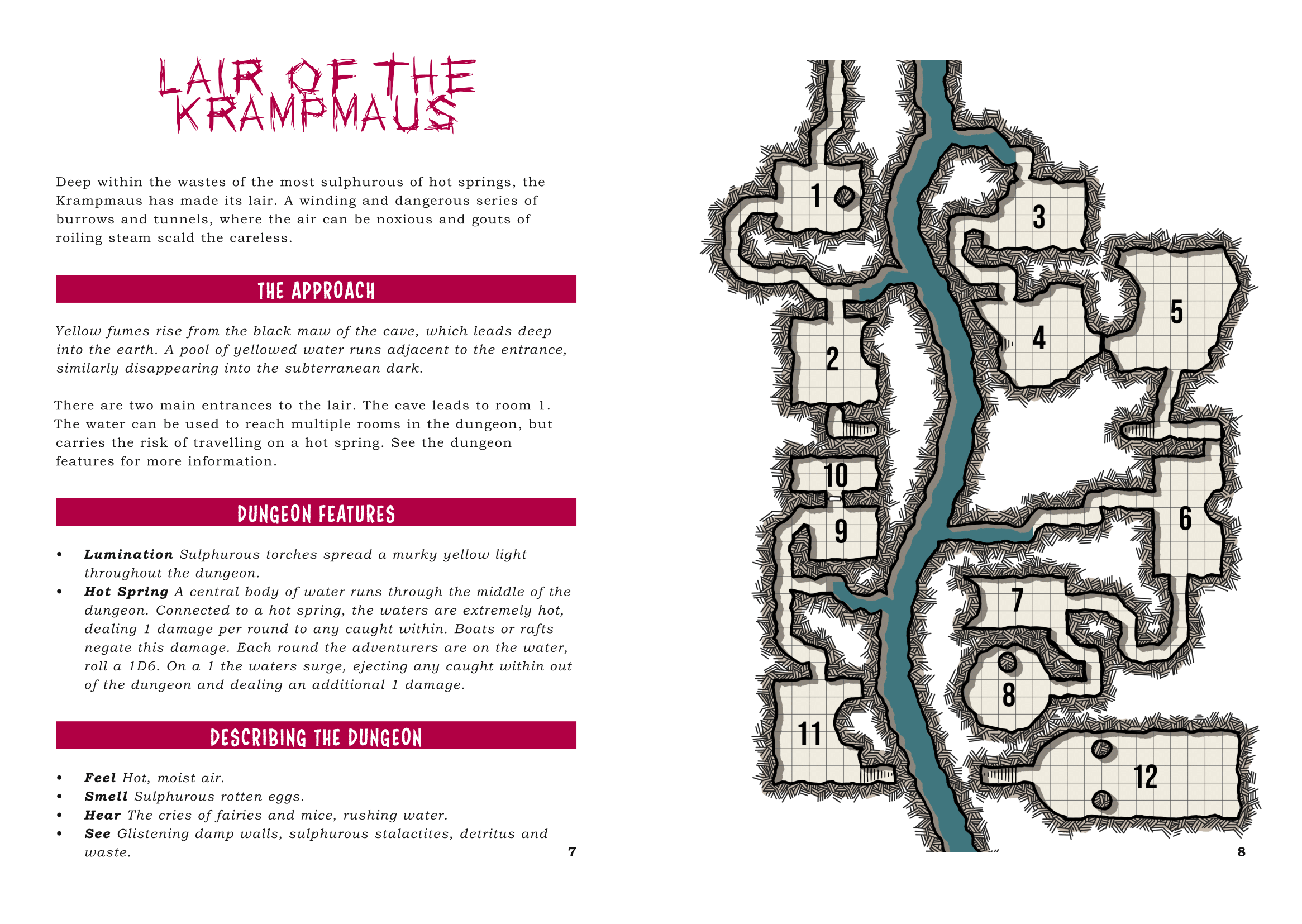 - A full Lair of the Krampmaus Dungeon with full descriptions, hidden rooms and random encounters.
